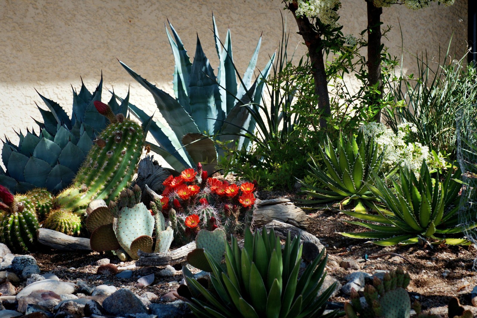 Growing plants in pots is twice as hard in the desert. The sun hits the sides of the pot and heats the soil much faster than it heats the ground.